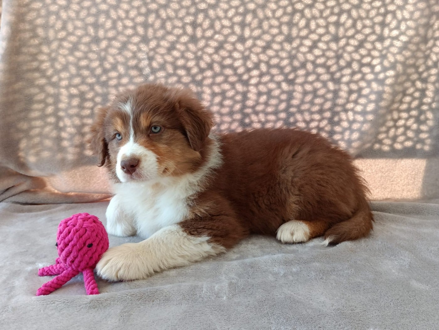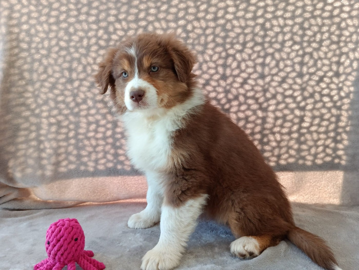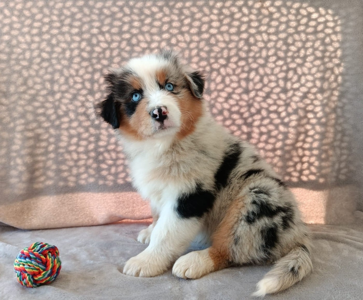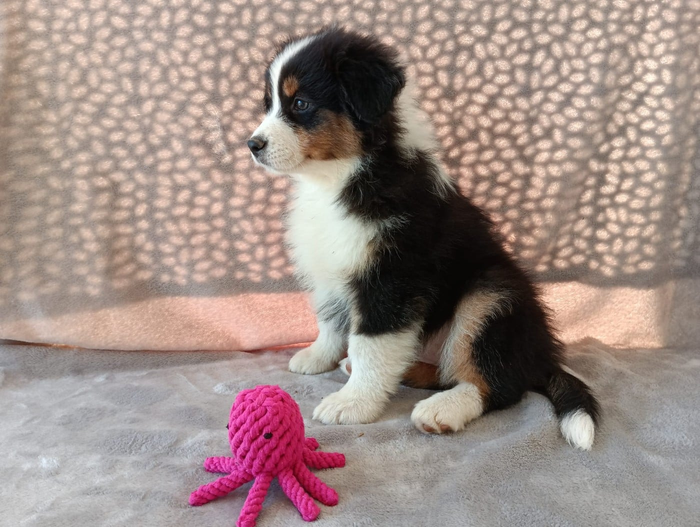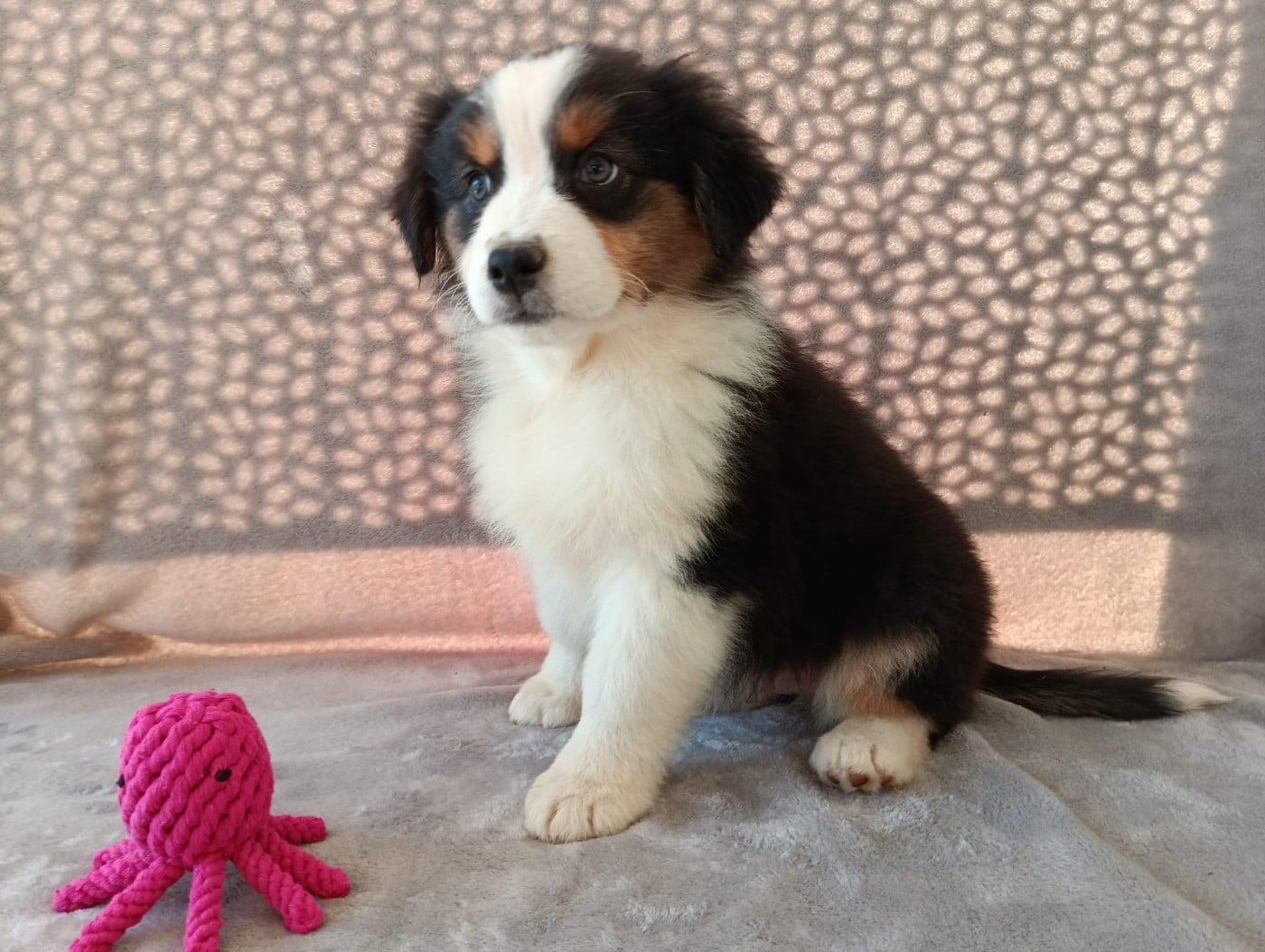 Nous avons le plaisir de vous annoncer la naissance de nos 5 adorables chiots berger australien, queue longue, bleu merle, rouge tricolore et noir tricolore, dont certains avec les yeux bleus, issus du mariage de Shangai et Tempo, LOF et confirmés, visibles tous les deux à la maison.